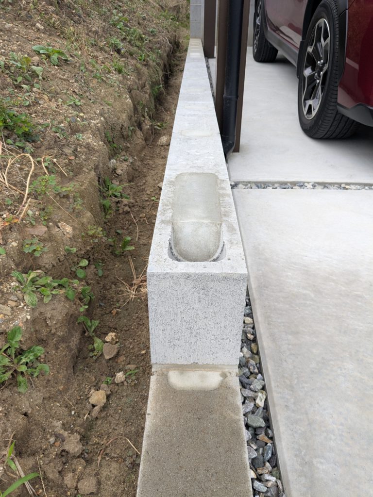 せっかく綺麗な外構(駐車場のコンクリ)を造っていただいたので、土まみれは避けたい。ということで、追加で外構業者さんに相談。CBの追加をすることにしました。