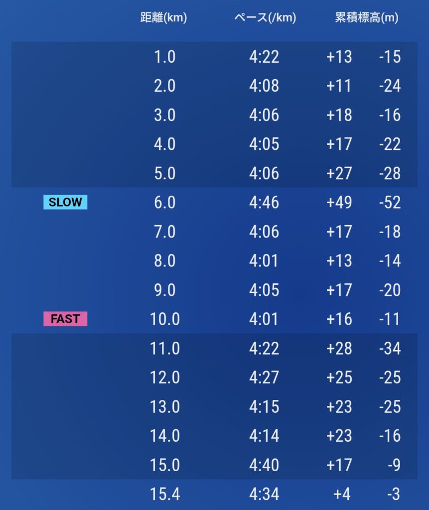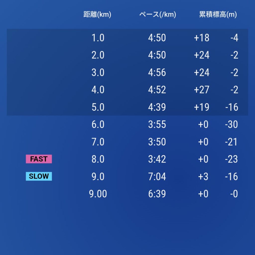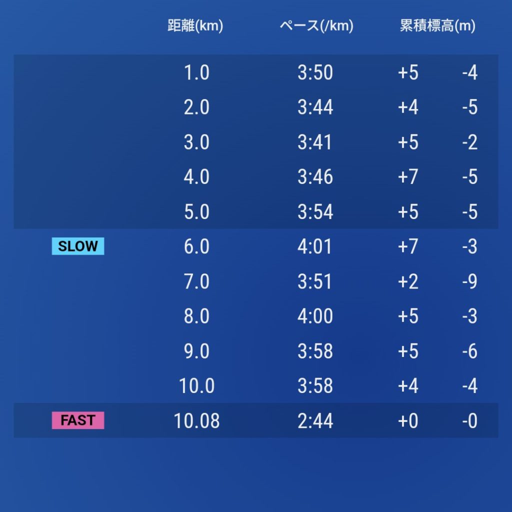 中盤少し垂れそうだったけど何とか4:01/1kmで踏ん張れたのが今回の収穫かな。